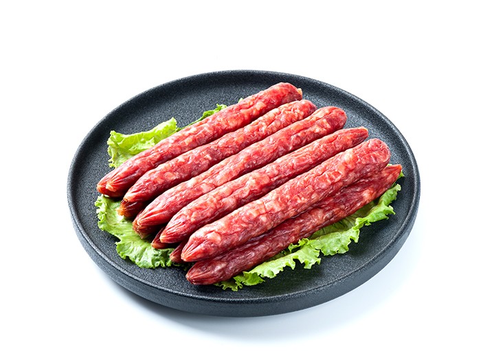 foodsect 兴客坊1.25kg江门风味腊肠(4袋) 黄金肥肉比例,腊味饱满,可蒸可炒,可卤可闷。 产品信息加工方法应用场景包装条码 箱规:11.25kg4;规格:12500g/袋;单个重:32±2g;口味:;勿需解冻,水开后放入锅中,隔水蒸9-11分钟即可食用流通、中快、团餐6921097107660