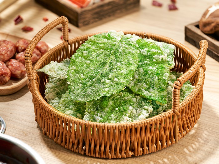 foodsect 兴客坊108g香酥翠叶(16盒) 上乘食用级蛋白桑叶,全年供应 产品信息加工方法应用场景包装条码 箱规:1108g16;规格:108g/袋;单个重:;口味:;油温180℃,炸制12-15秒火锅、中快、宴席6921097108087